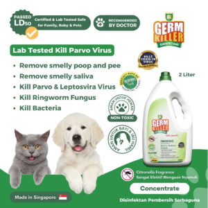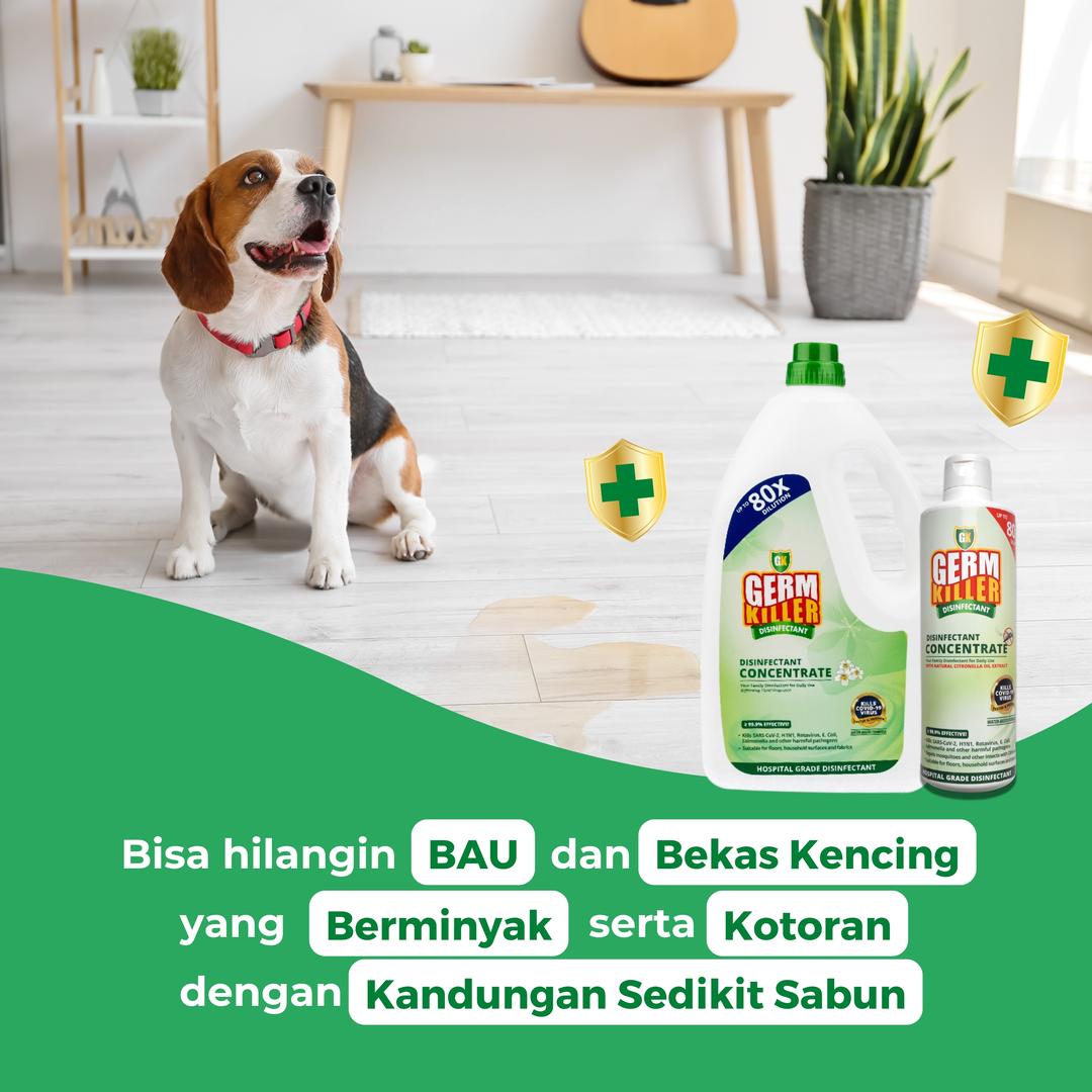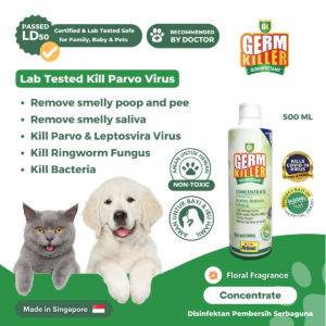 Kandungan bahan aktif Germ Killer jelas terbukti aman untuk semua (manusia dan hewan), dapat membasmi kuman, bakteri, dan virus dengan efektif tanpa efek samping, lebih aman dibanding bahan disinfektan pada umumnya seperti alkohol, tidak mengandung racun dan tidak menimbulkan iritasi (pada manusia) serta aman jika terjilat (pada anabul), bekerja dengan cara menetralkan bakteri yang menempel di permukaan benda.
