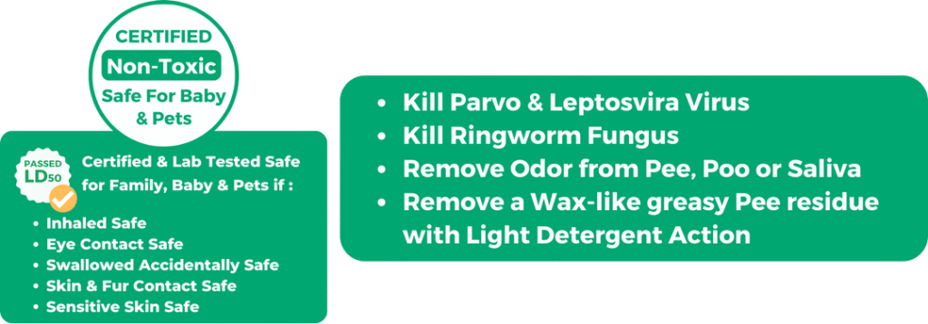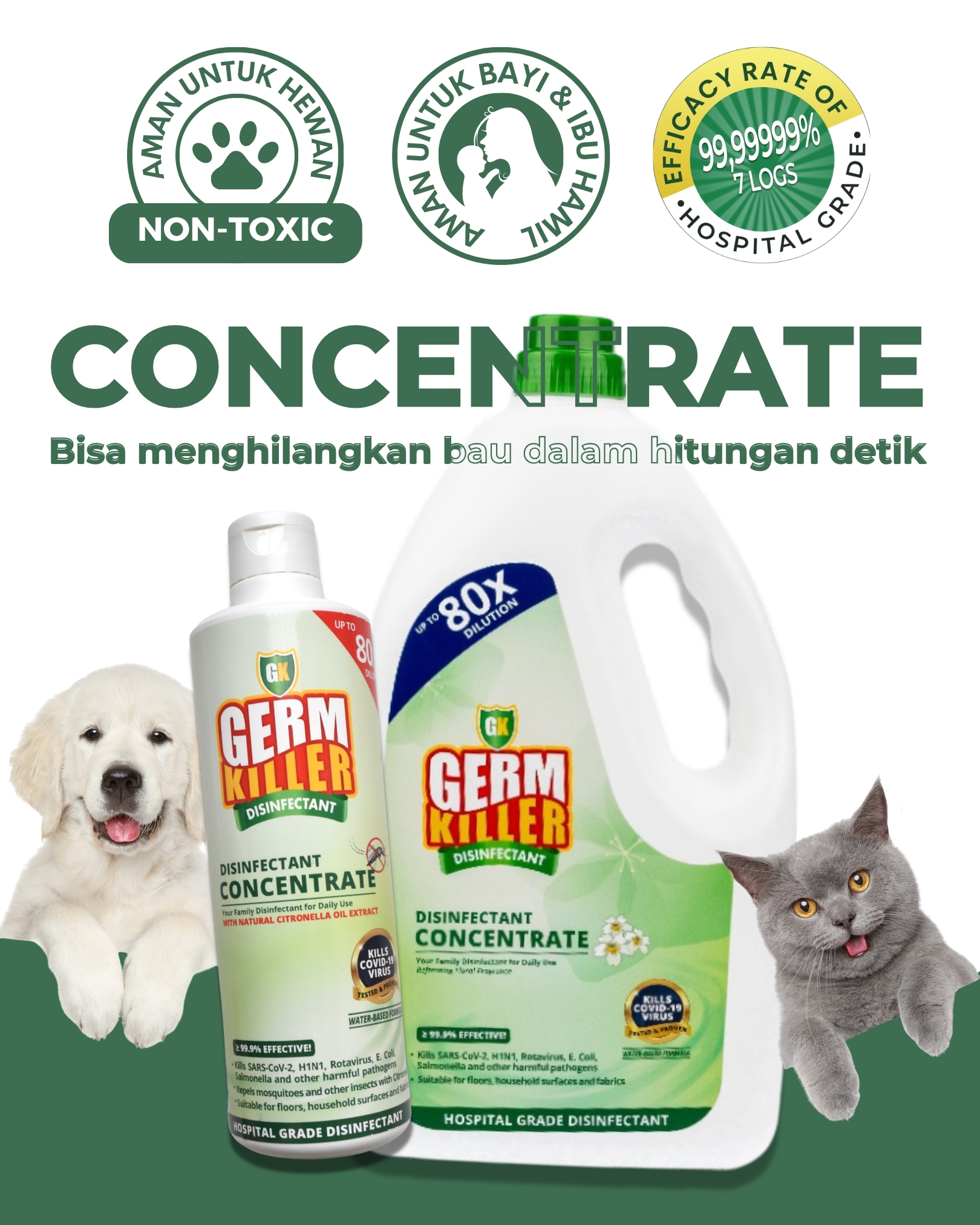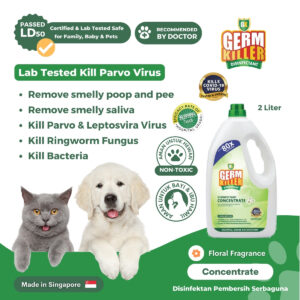 GK Concentrate tidak mengandung alkohol dan sudah lulus uji tes LD50 sehingga dapat dikategorikan tidak beracun dan aman jika tak sengaja terjilat, terhirup, terkena kulit dan kulit sensitif oleh anabul di rumah. Hanya produk Germ Killer yang memiliki sertifikasi ini loh
