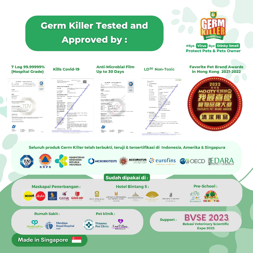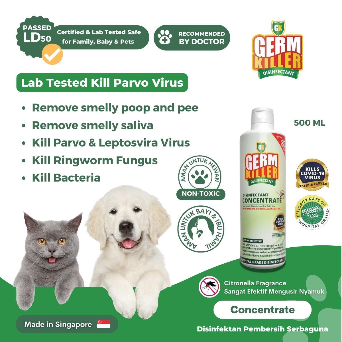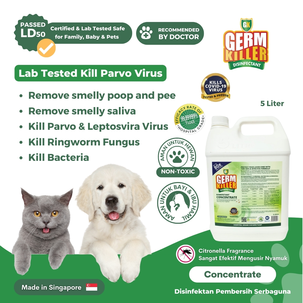 • Untuk mainan / alat keperluan hewan peliharaan anda bisa campurkan 30 ml GK Concentrate dan 1 Liter Air namun rendam dulu mainan / alat keperluannya selama 10 menit agar seluruh bakteri dan virus bisa terangkat kemudian lap bersih dan keringkan