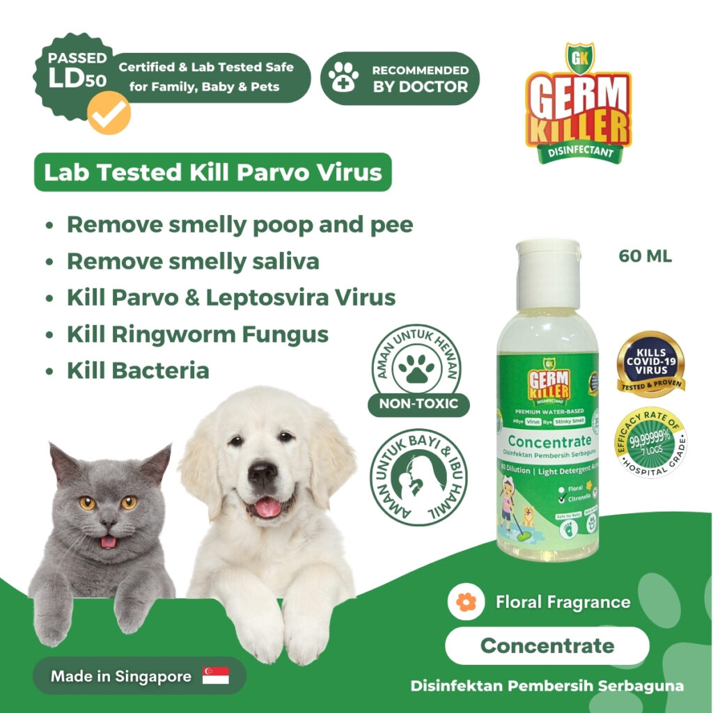 • Untuk mainan / alat keperluan hewan peliharaan anda bisa campurkan 30 ml GK Concentrate dan 1 Liter Air namun rendam dulu mainan / alat keperluannya selama 10 menit agar seluruh bakteri dan virus bisa terangkat kemudian lap bersih dan keringkan
